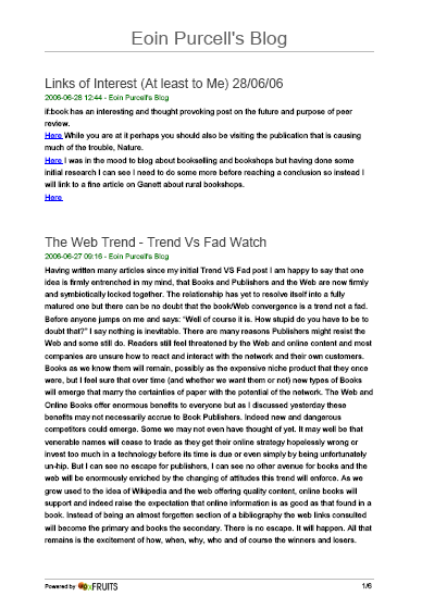 One is a mobile version of my RSS* feed. The newest one however is something that amazes me. It allows you to export pages of my blog into a PDF file simply by clicking it. now it ain’t the fastest piece of technology in the world but then neither is PDF generating so I will forgive that flaw but god it is useful.
