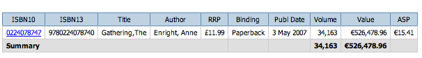 And how bad here reception was in the UK (She gets dissed again here). I though, it being the season of good cheer, that I’d update again and the result is stunning. Enright has sold some 34,000 books and generated over €500,000 in sales.