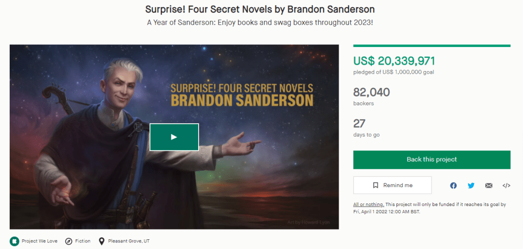The Bookseller: Sanderson raises more than $18.5m on Kickstarter to publish four new novels